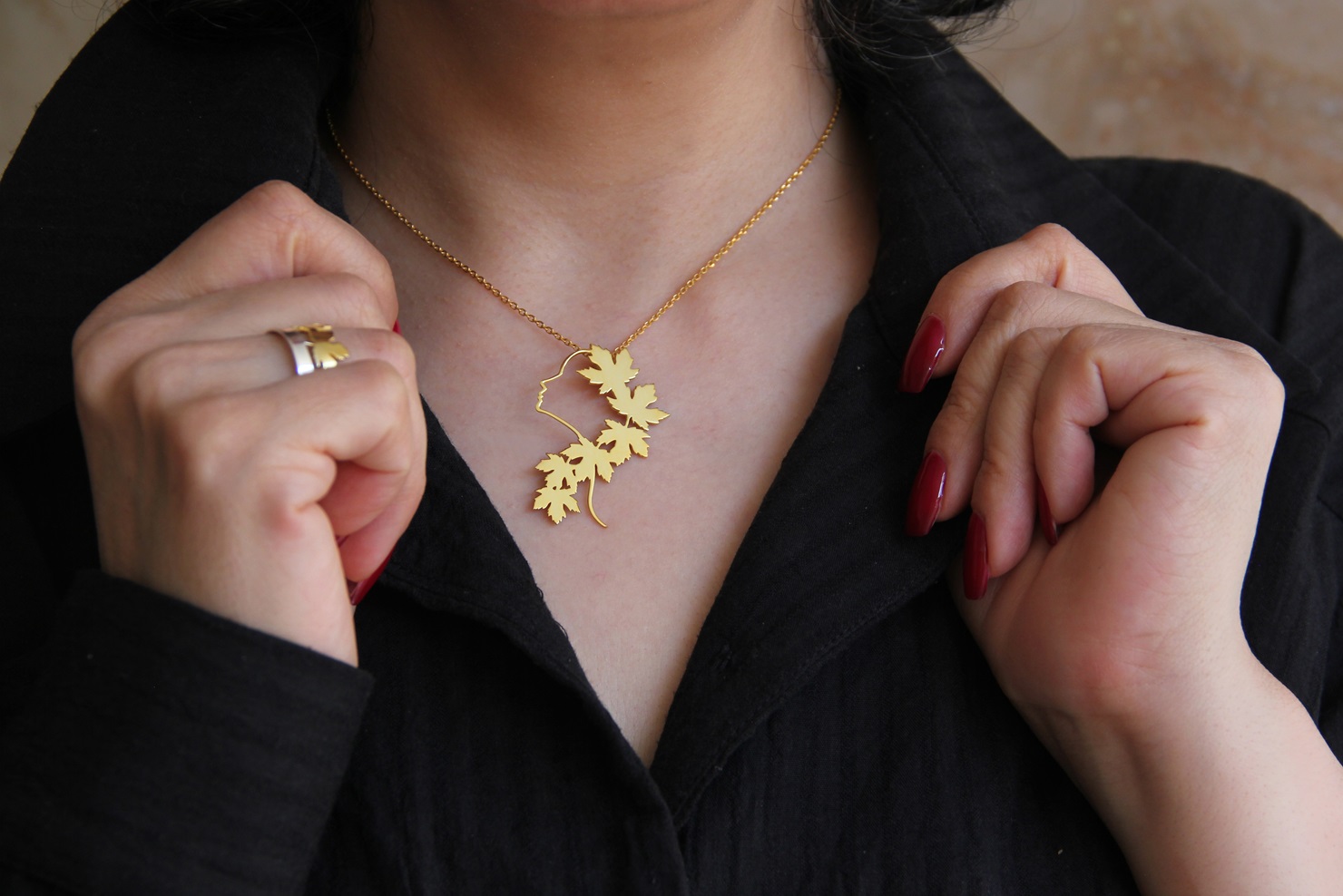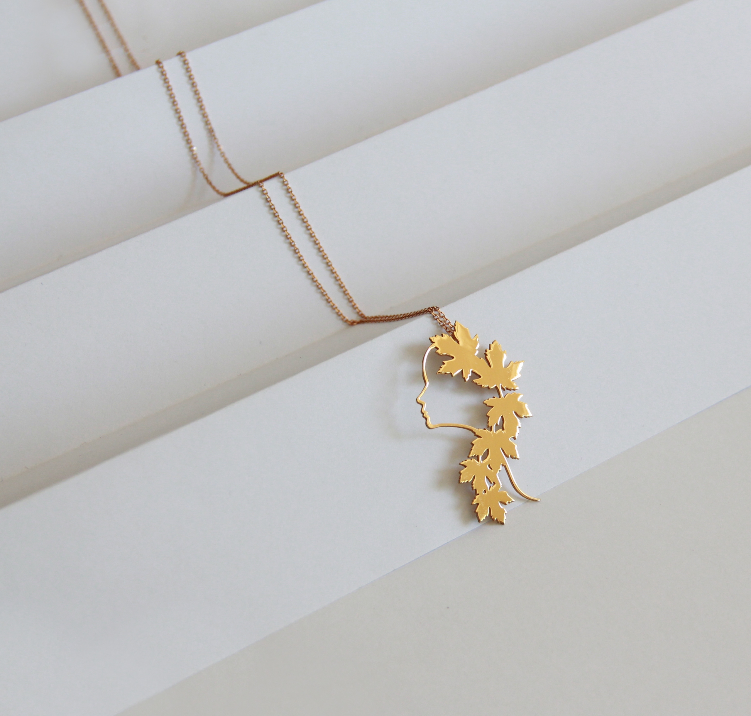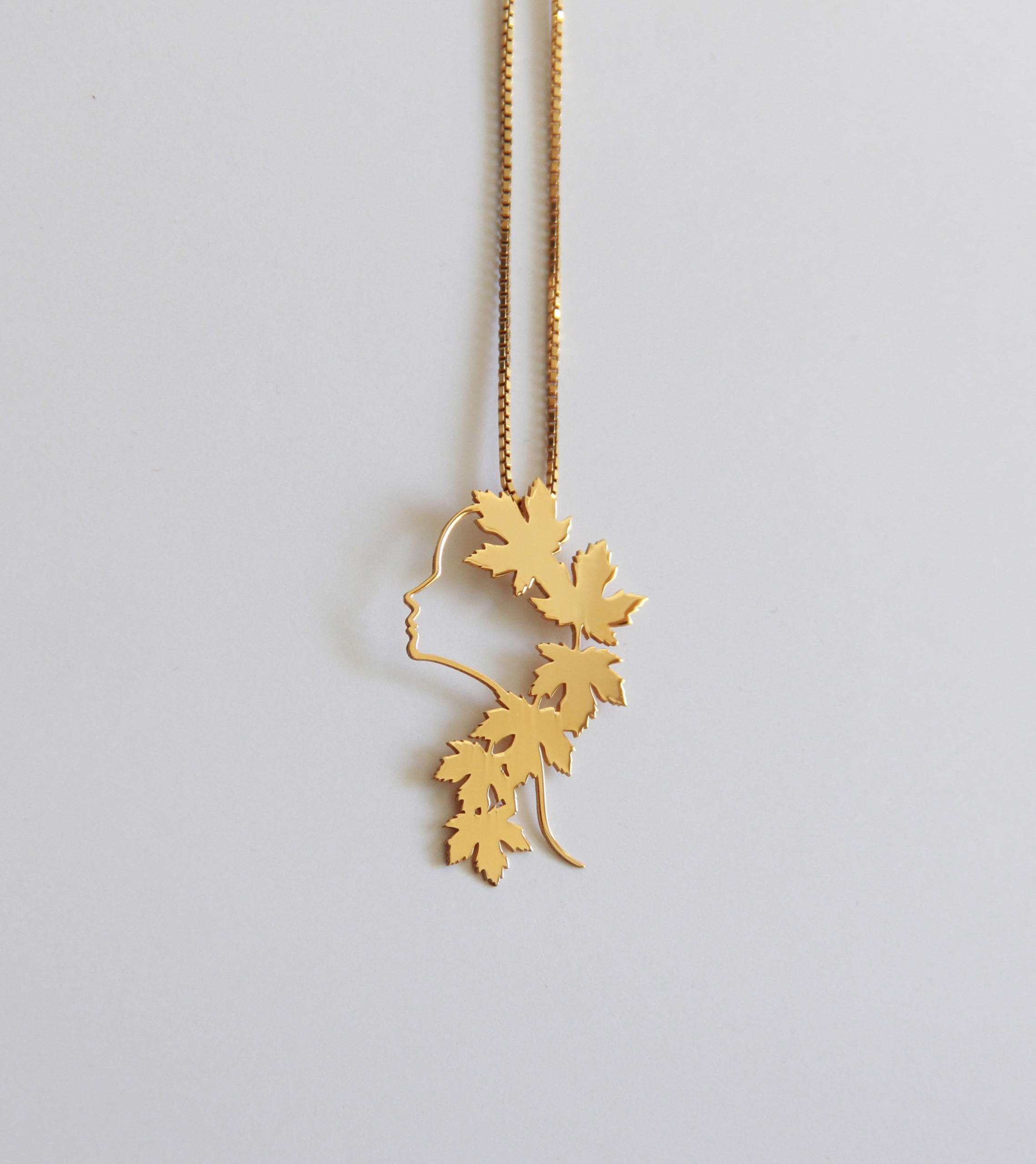 توضیحات: آویز رخ خزان با الهام از طبیعت پاییزی خلق شده است و گویی بانویی گیسوانش را به دست باد پاییز سپرده است. (( قابل سفارش ))